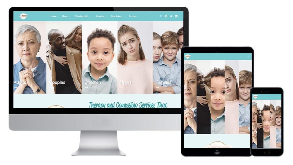 Website features Connection of Hope's therapy and counseling services, mental health specialties, how they support different types of patients, and a Mental Health and Wellness educational blog.